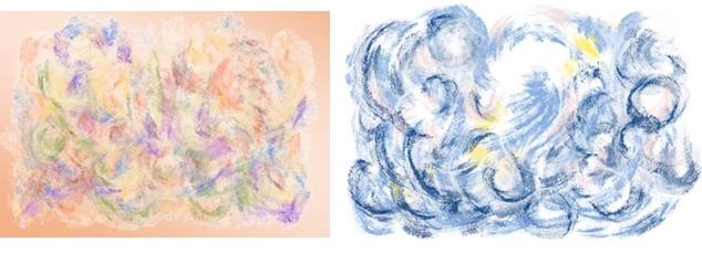 Da jeg modtog mailen med billede og musik, var min første reaktion ved første glimt af billedet, et lille hop af overraskelse – derefter stor glæde. Overraskelsen gik mest på farverne, og den livlige glædesfyldte energi i billedet (ved ikke lige hvorfor det overraskede mig, måske pga. undertrykt glæde? ) og da jeg hørte musikken blev det yderligere forstærket. Jeg blev dybt rørt, og oplevede til slut en tilstand af uendelig væren, som at komme hjem!